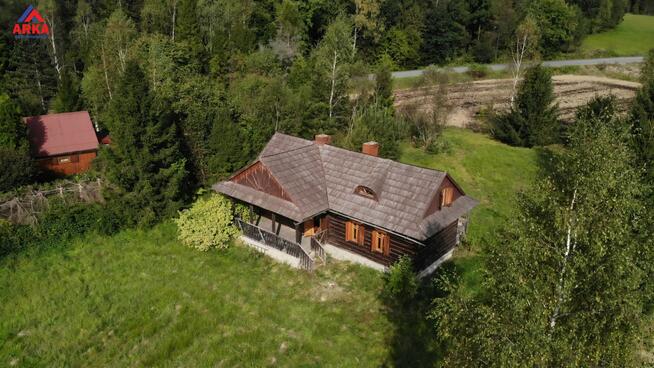 15Drewniany dom z bali w sąsiedztwie lasu, las przynależy do nieruchomości Drzewostan - klon, jawor, wierzba Dom z bali ...