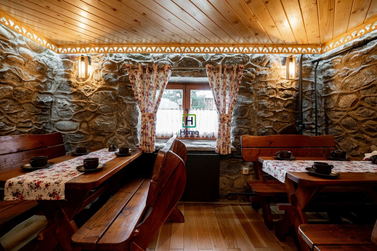 Na parterze znajduję się w pełni wyposażona kuchnia oraz jadalnia wraz z kominkiem.